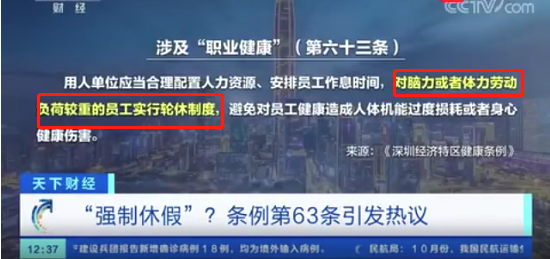 深圳市在第六届人大常委会第四十五次会议上表决通过了《深圳经济特区健康条例》,提出推行强制休假制度,以更好地保障劳动者身心健康。