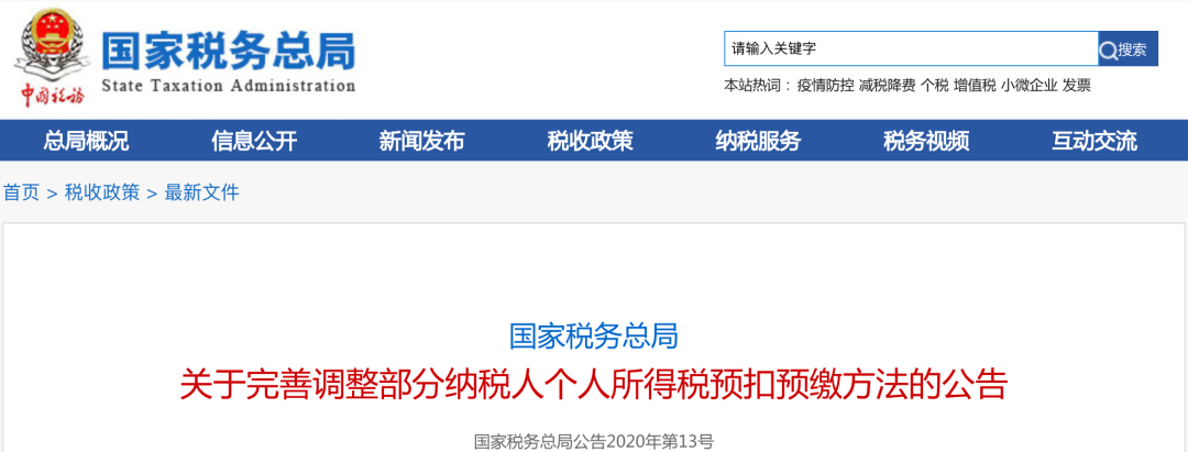 日前,为了进一步减轻首次取得工资、薪金所得的居民个人和毕业学生等年度中间首次入职人员以及实习学生预扣预缴阶段的税收负担,国家税务总局发布的《关于完善调整部分纳税人个人所得税预扣预缴方法的公告》,此公告自2020年7月1日执行。