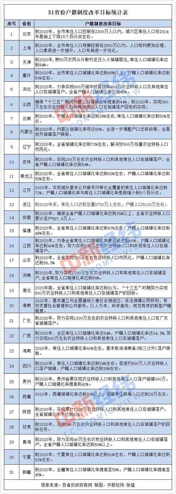 目前,31省份均已出台户籍制度改革相关意见,2020年将集体“交卷”。