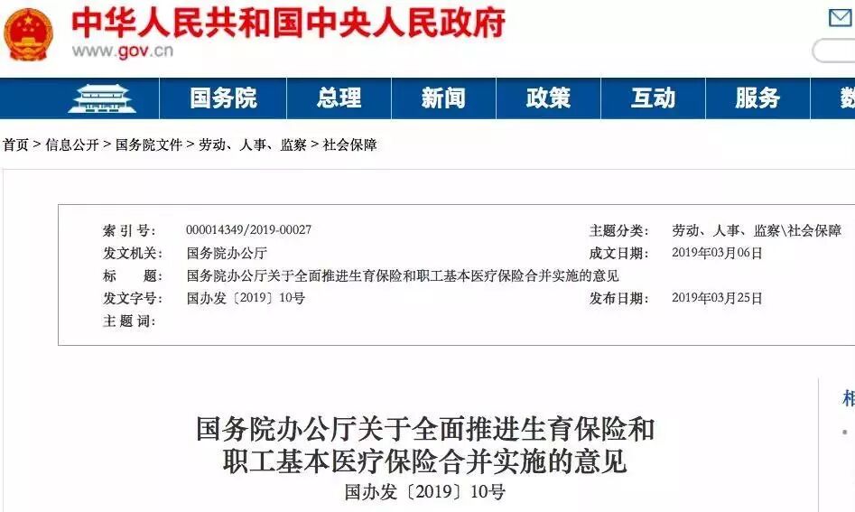 3月25日,国务院办公厅发布了《国务院办公厅关于全面推进生育保险和职工基本医疗保险合并实施的意见》(以下简称《意见》)。《意见》明确,生育保险基金并入职工基本医疗保险基金,统一征缴,统筹层次一致,而且合并要在2019年底前实施。