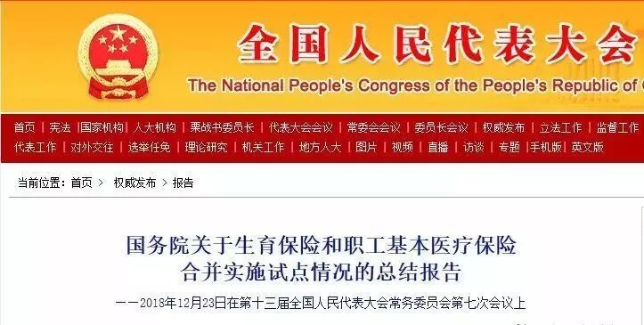 不久前,《国务院关于生育保险和职工基本医疗保险合并实施试点工作总结的报告》在十三届全国人大常委会第七次会议上提请审议。