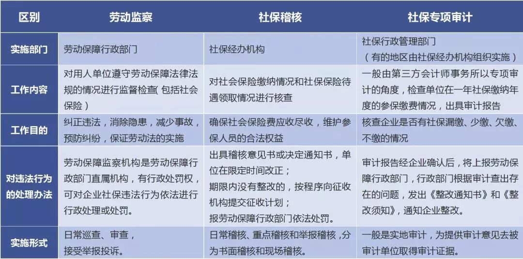 由于“黑名单”政策尚处于征求意见阶段,具体如何实施尚未有定数,与其担心“被查”不如随我们先来了解一下这几个与社保监管审查有关的话题:社保稽核、劳动监察、专项审计。